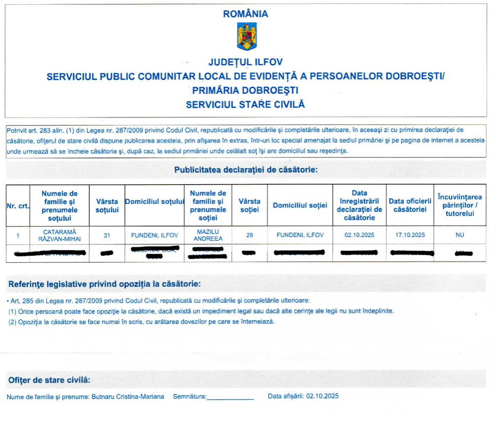 Publicatie casatorie CATARAMA RAZVAN MIHAI si MAZILU ANDREEA